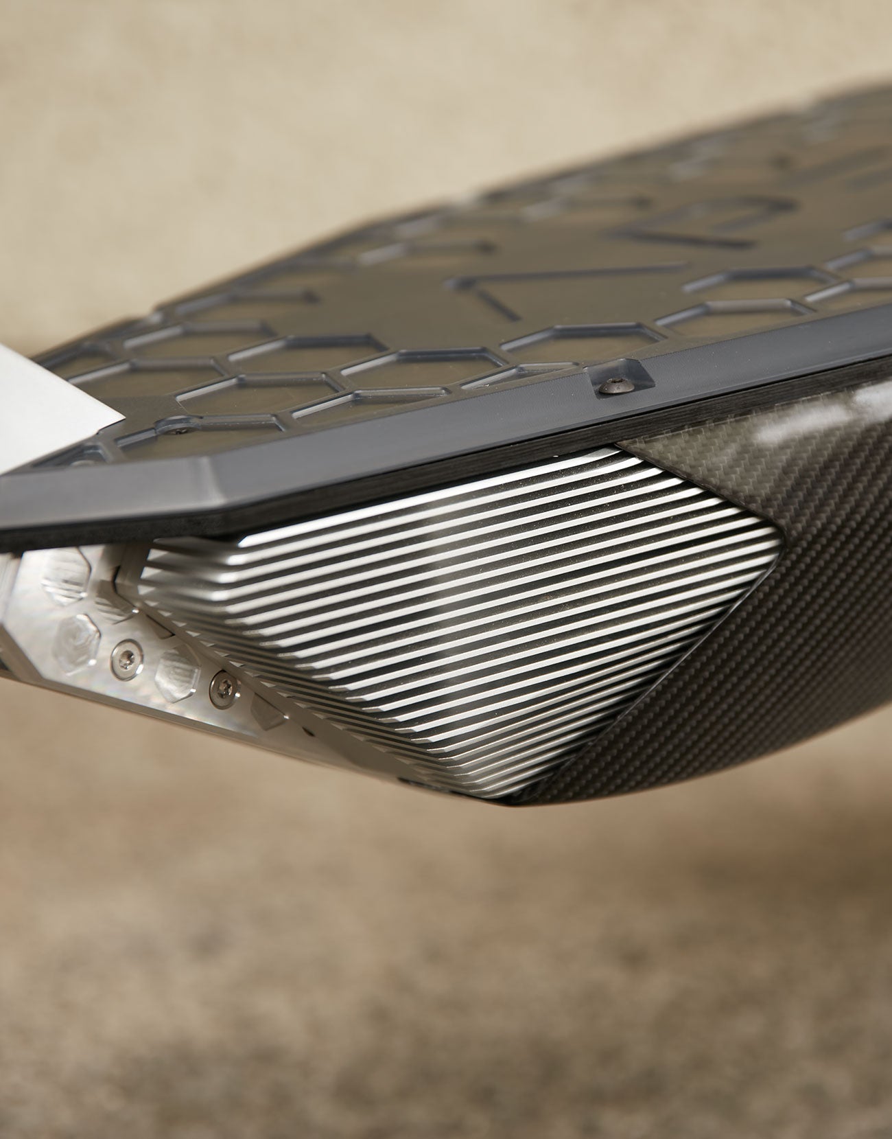 At 11.5 inches wide and 32 inches long, it offers the most expansive platform in its class—built for those who demand more. Beneath its sleek exterior, a 5mm thick solid carbon fiber plate subframe reinforces its structure, ensuring unwavering stability and performance.