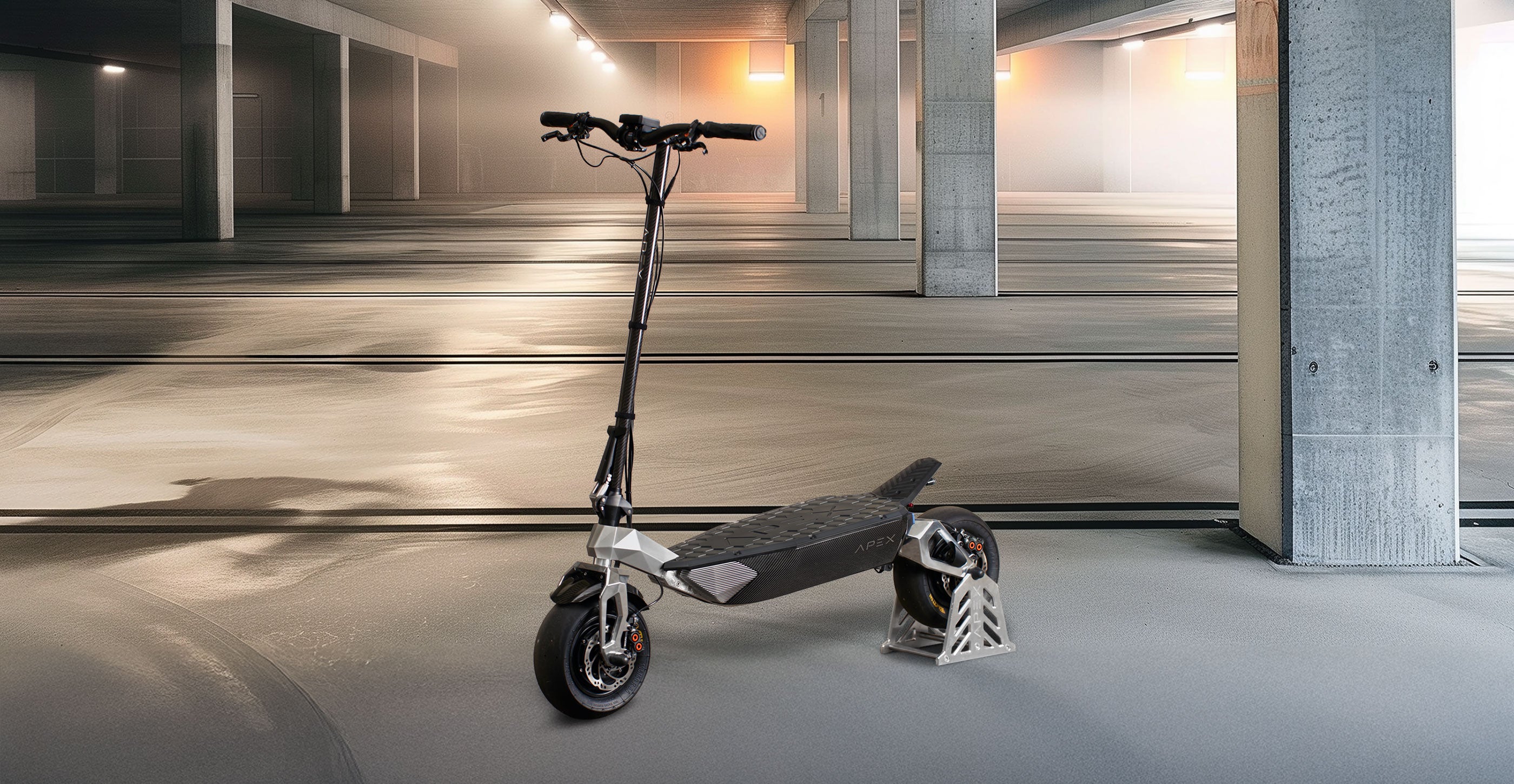 The APEX’s striking design is a testament to precision and purpose. Meticulously designed, engineered, and hand-assembled, every component is carefully considered to optimize performance. Unlike mass-market scooters, the APEX is built to be different - with more extreme performance and a bold design.