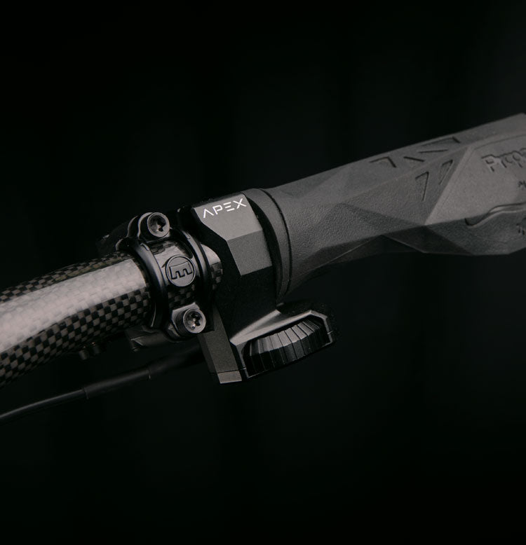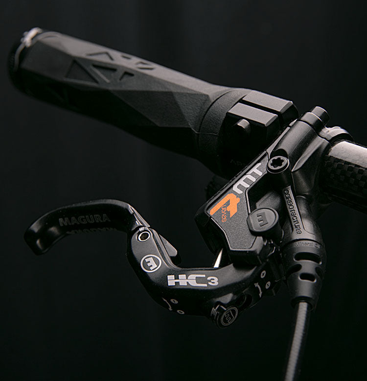 The APEX's braking system isn't just equipment - it's engineering artistry. At its heart lie the legendary Magura MT7 HC3 4-piston brakes, delivering the kind of precise, progressive stopping power that turns uncertainty into absolute confidence.